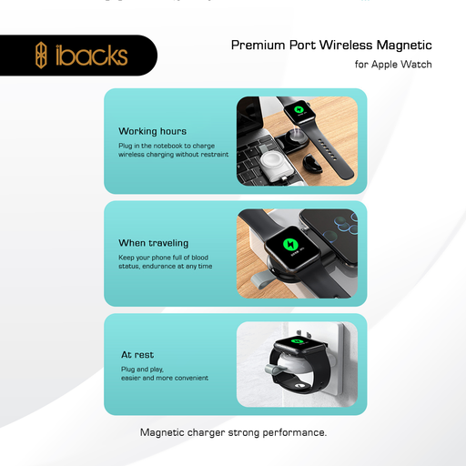 IbacksIbacks Port Wireless Magnetic for Apple Watch Out PUT Power 2W Port : 1X USB, TYPE-C Material : ABS Dimensional : 82*37*13MM Input Voltage ...